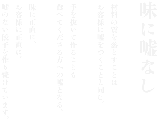 ものづくりを行ううえでこだわり“すぎる”という事はない 野菜や肉、すべての食材にこだわり、作り方にもこだわる。 長ちゃん工房ではお客さまと正面から向かい合い おいしい物だけを作り続けています。